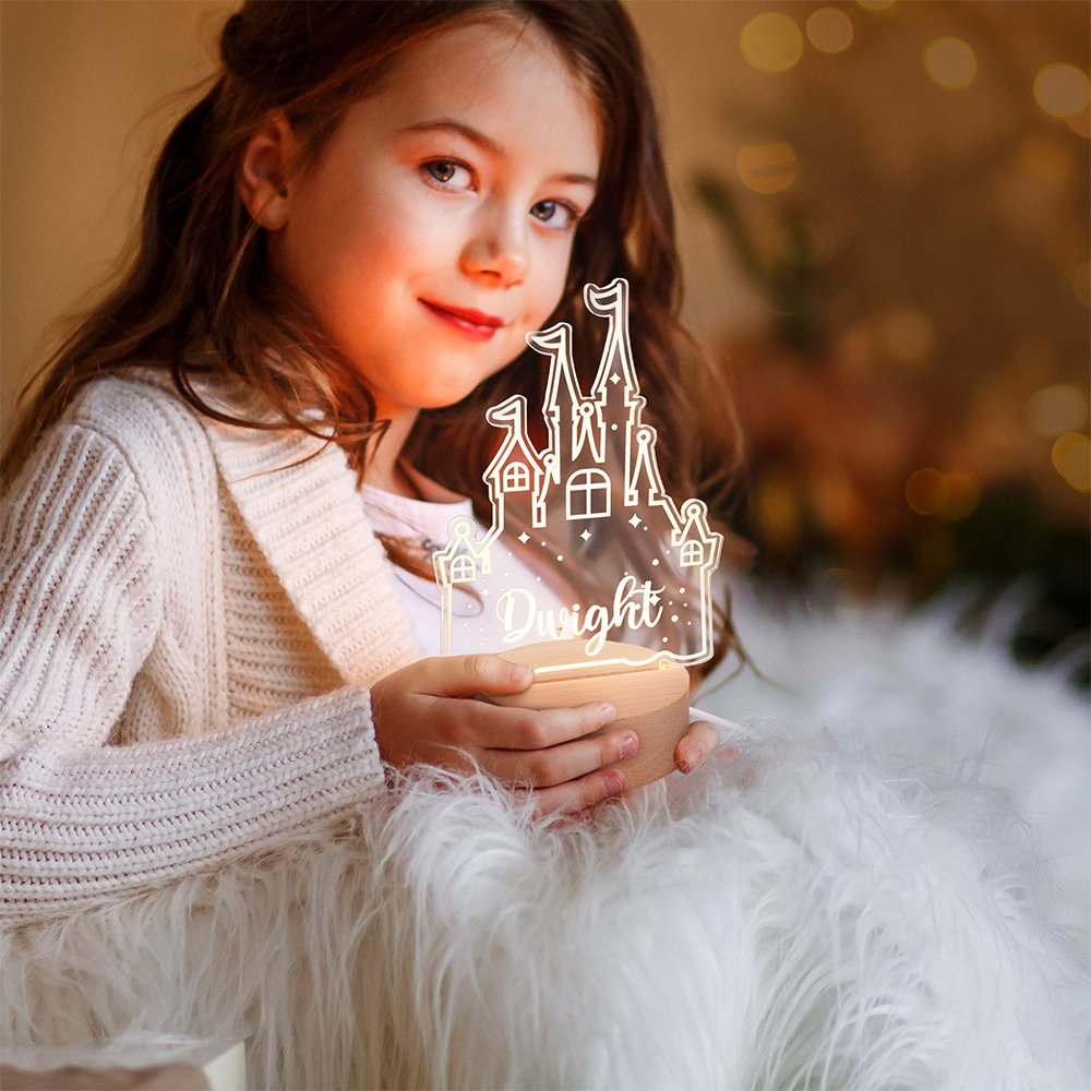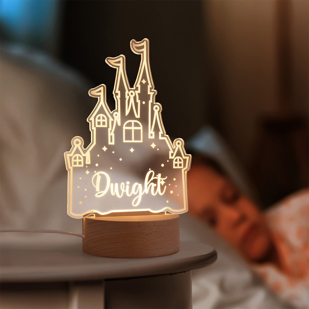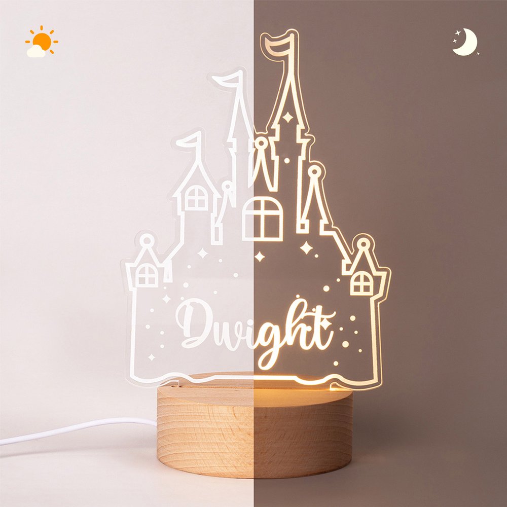 Feature: Non-fading, LED Night Light, Name Customization, Cartoon Princess Castle Design