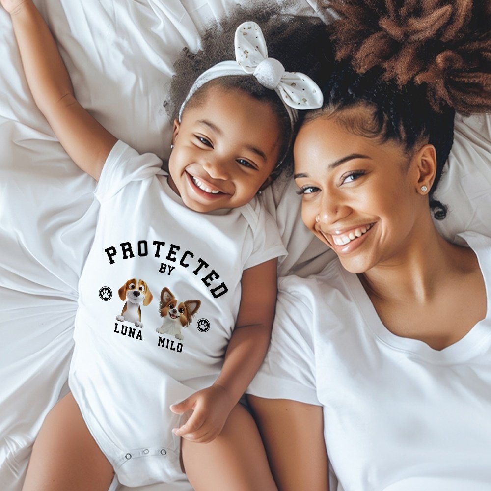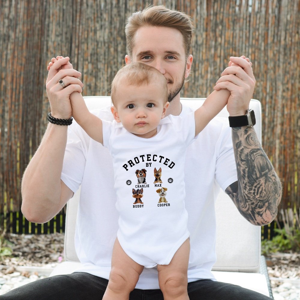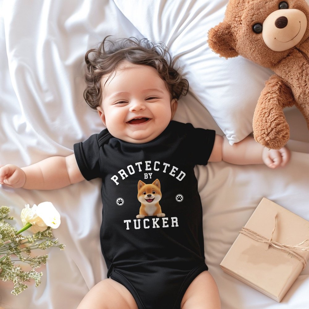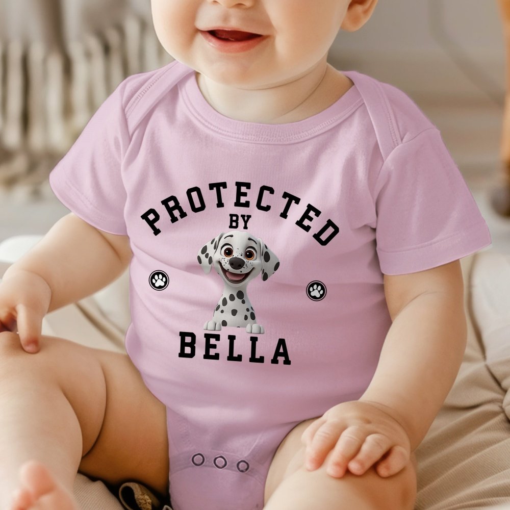 Personalized 100% Cotton Protected By 1-4 3D Cartoon Dogs Baby Bodysuit with Name Daily Wear Baby Shower Birthday Gift for Newborns